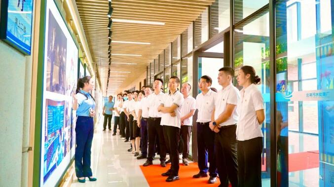最后,全体参会人员面对党旗重温入党誓词,并参观北湖污水处理厂治水科技馆,感受云顶国际 公司运用科技创新手段赋能污水治理高质量发展的具体成效。