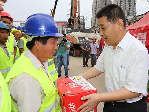 彭浩表示,今天受万勇市长委托,看望城投公司生产建设一线的同志们,感谢你们在高温酷暑里坚守在生产建设一线,为了市民安全用水用气、为了城市建设所作的积极奉献!他勉励大家继续发扬这种不怕高温酷暑、克难奋战的精神,再接再厉,为城市的发展再作贡献。